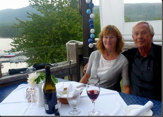 Carolyn and Hank invited us to dinner on their boat. They’re both good cooks if our dinner was any indication (halibut they’d caught themselves), Hank is a wood carver and hunter, they’ve been married 57 years, and Hank had open-heart surgery last spring then defied doctor’s orders and left for Alaska two months later. Carolyn has been boating and fishing all her life. We heard lots of great “boating in Alaska” stories, including some about their time at Haida Gwaii (formerly called the Queen Charlotte Islands, now having it’s First Nations name again.) They’re knowledgeable, very experienced, tough boaters. We’d love to have their skills someday!